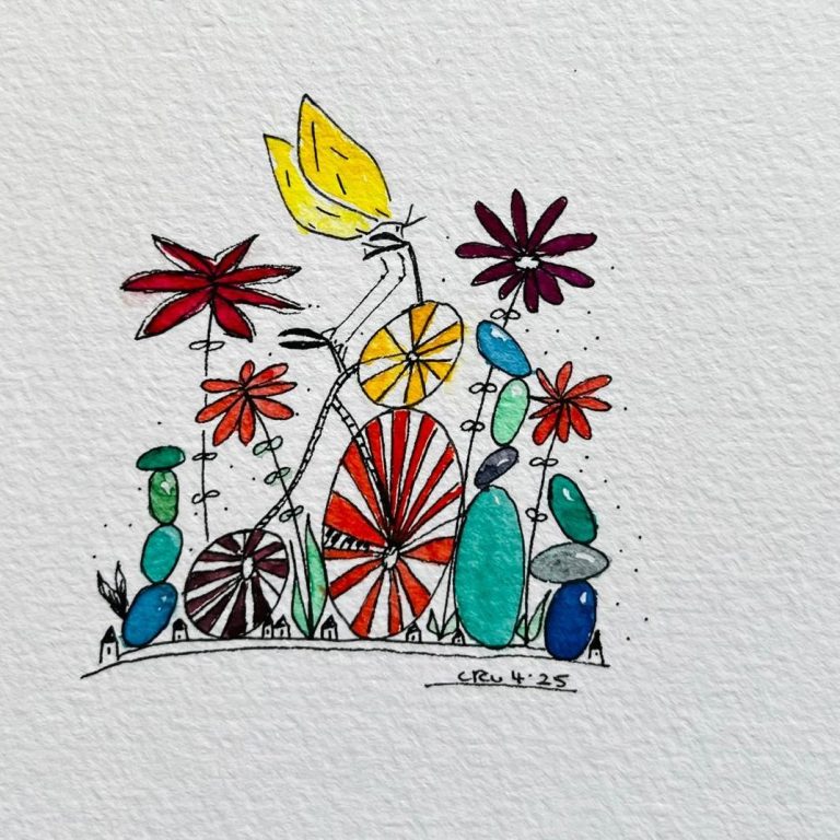 Conny Rutsch lebt und arbeitet als Künstlerin und Musikerin in Buer. Mit feiner Feder zeichnet sie seit etlichen Jahren jeden Abend ein Bildchen: eine Fantasiewelt samt winziger Klaviertastatur. Ihre Phantästchen.