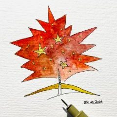 Ein wiederkehrendes Element in Conny Werken sind die Klaviertasten, die jede Zeichnung von ihr wie ein kleines Wimmelbild erscheinen lassen.